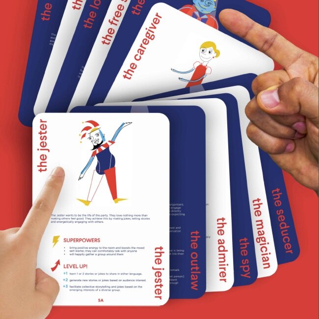 The Culture Flip cards were designed to help language learners interact better at language exchange events. They present six archetypes, each with a light and dark side, representing the different default behaviours we adopt in social settings. The cards propose descriptors and activities to help learners with self-awareness and goal setting. They can also be used by teachers and facilitators to support original language / communication learning.
